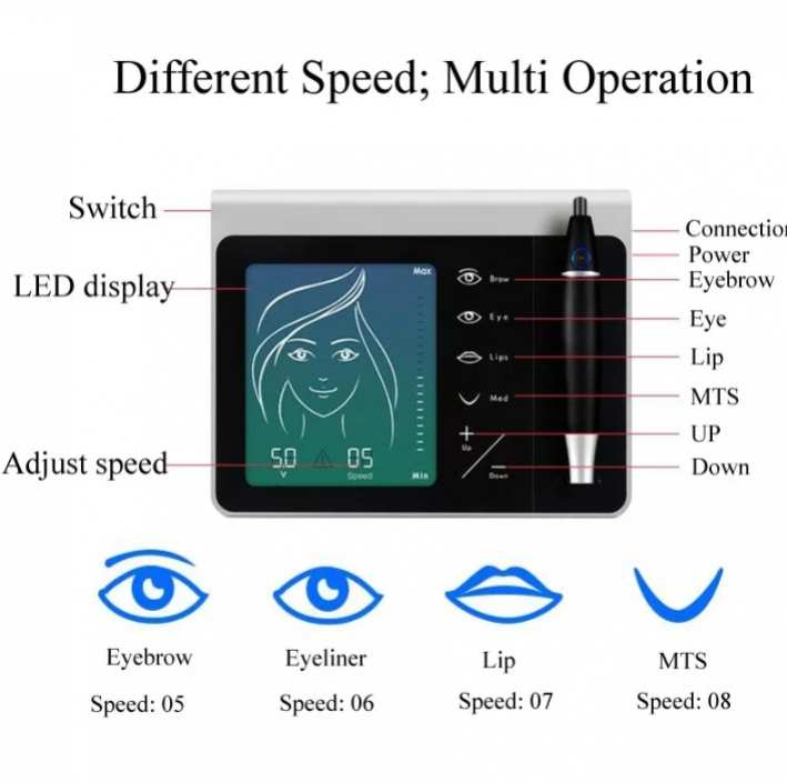 Máquina de tatuagem PMU com tela touch, caneta digital para maquiagem permanente de sobrancelha, eyeliner, lábios e tratamentos de contorno de rosto